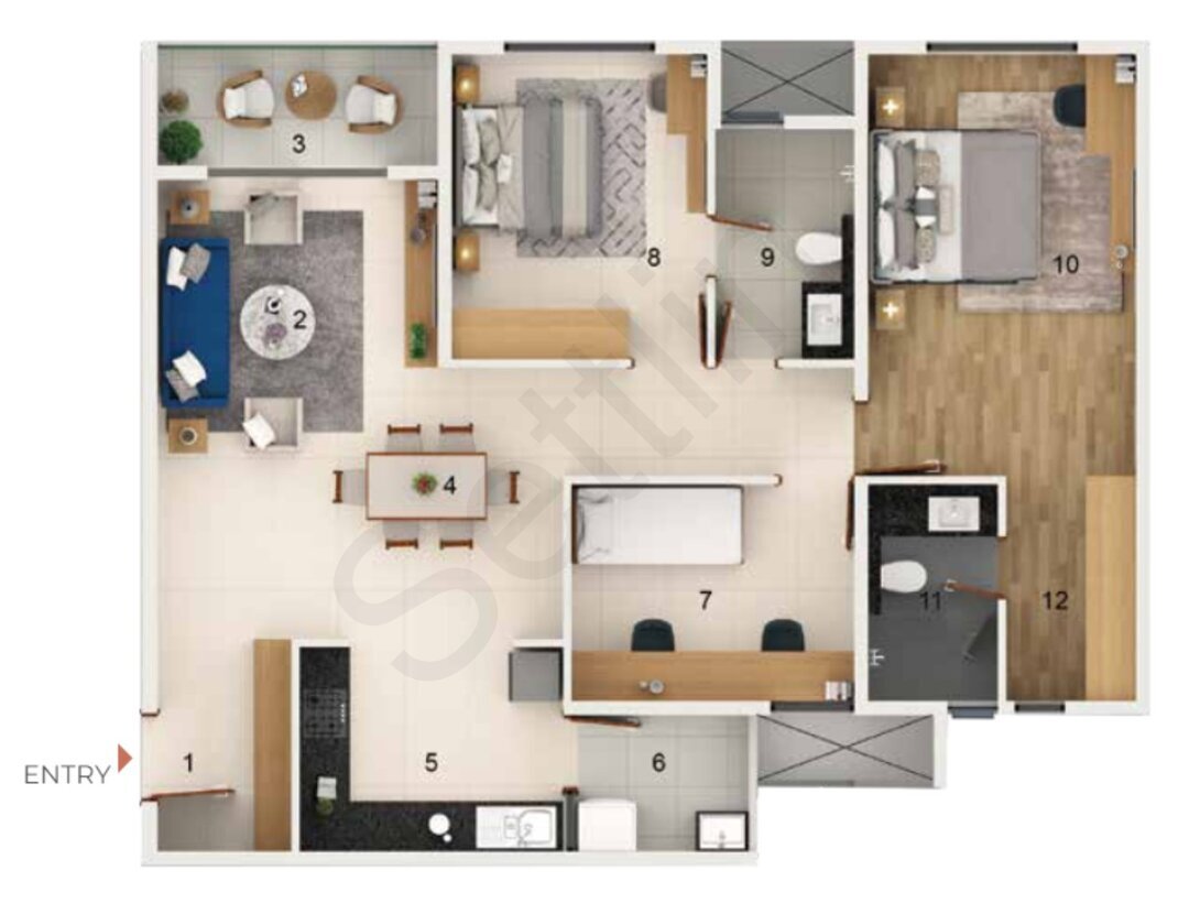 2.5 And 3 BHK Apartment is a 2.5 and 3 BHK flat with an approximate size band of 1446-1906 sq. ft.. Beyond the spec sheet, it helps to judge layout usability, room proportions, and natural ventilation on site.