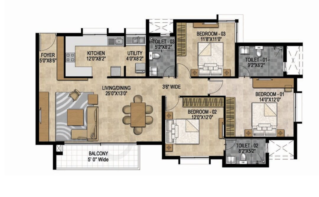 3 BHK Apartment is a 3 BHK flat with an approximate size band of 1767 sq. ft.. Beyond the spec sheet, it helps to judge layout usability, room proportions, and natural ventilation on site.